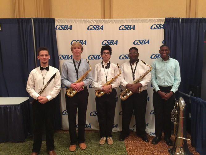 The 5/4 Ensemble, which consists of Daniel Kuntz on clarinet, Chase Hornsby on alto saxophone, Aquay Backus on alto saxophone, Katahj Copley on tenor saxophone, and Khalil Newell on tuba, has performed for the Faculty of CHS at a faculty meeting, the Georgia School Board Association, and the Rotary Club of Carrollton. The students decided to create this ensemble even though it is not a common instrumentation. Because of the unique grouping of instruments the students have created their own arrangements to perform.