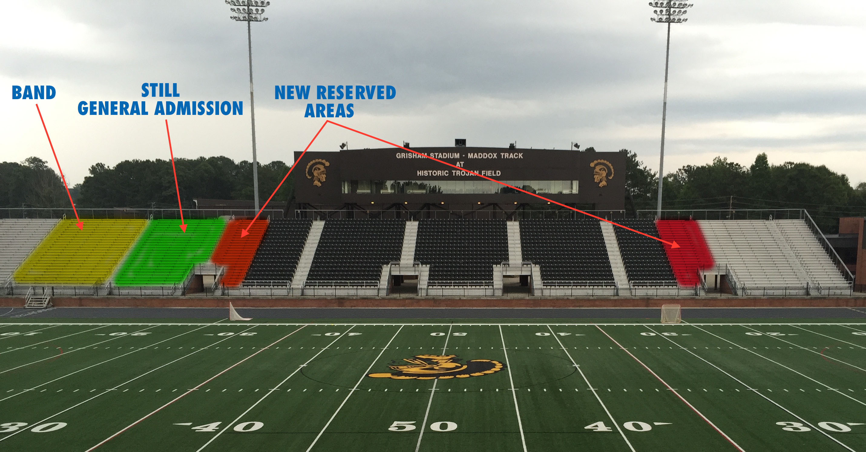 We also have a unique opportunity to share with our band parents and supporters this week from the CHS Athletic Boosters. Representatives from the Athletic Boosters will be in the lobby of the Don Hall Band room this Tuesday afternoon from 6pm till 7pm to pre-sell new, cushioned reserved seating in the section between the band and the current reserved seating on the home side of Grisham Stadium. This Tuesday is an exclusive opportunity just for band parents and supporters to purchase these new reserved seats for the 2016 season, prior to them being available to the general public. So make sure to stop by and take advantage of this opportunity to secure reserved seating near your awesome Trojan Band! Pricing details and the seating chart are available by clicking on the following links: 2016 Pricing Chart • Seating Chart • Stadium Image