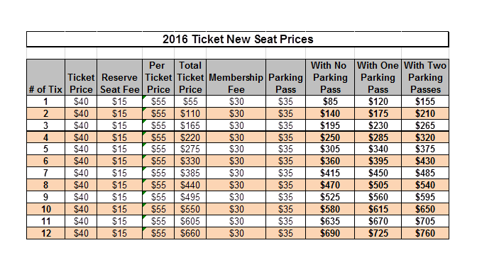 - Tuesday, 8/30/16, 6pm – CHS Athletic Boosters in band room lobby to sell new reserved seating exclusively to band parents/supporters, prior to general public offering – see details above