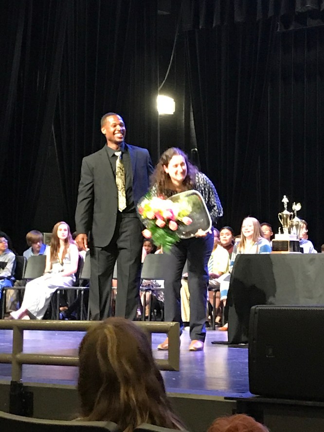Ms. Menendez, thank you for being an amazing role model for all of us around you- parents, students, and staff. Your love of all students and genuine desire to help others is admirable and we are so thankful to be a part of your team. You pour into everyone you meet and do your best to brighten other people’s days. I hope that we were able to brighten yours today with the surprise of your family being in attendance to watch as you were awarded this incredible honor. Well deserved! You are respected by students, parents, and colleagues because of who you are and what you represent! Thank you for being a ROCKSTAR!!! We love you! Congratulations!