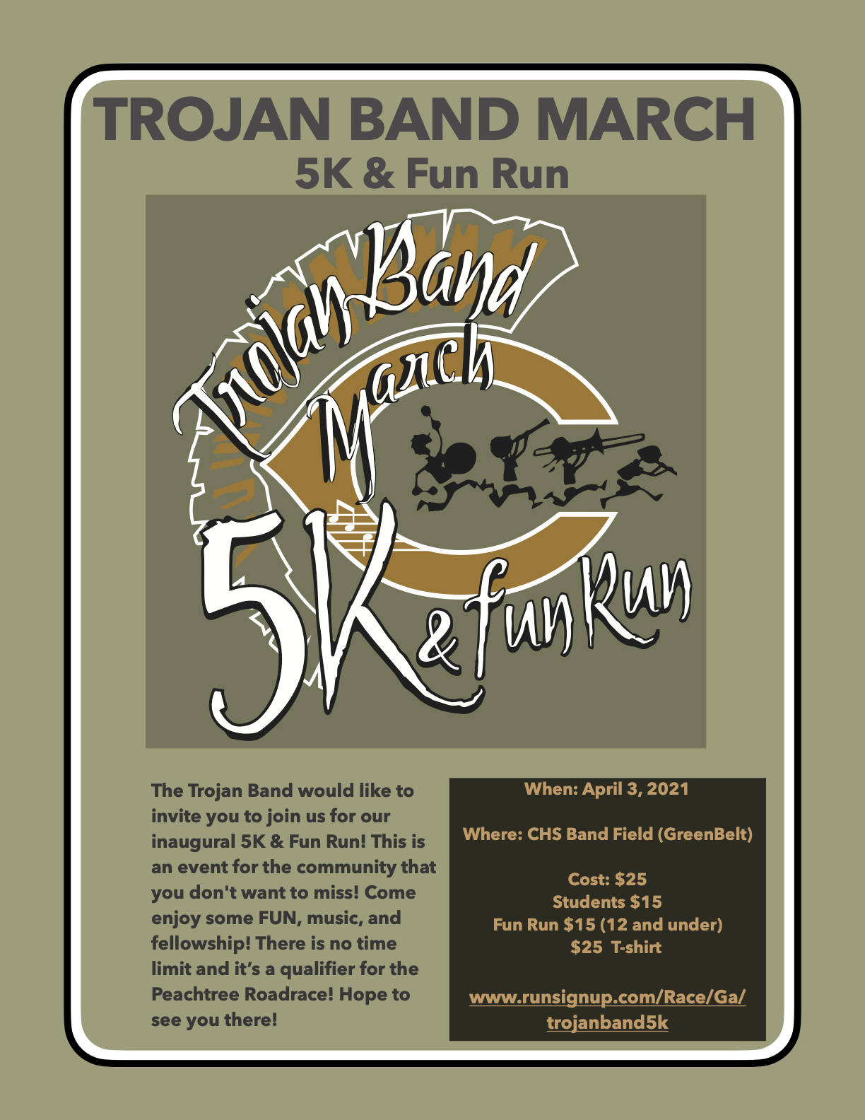 To sign up for the 5K as a participant or to purchase a shirt: https://runsignup.com/Race/Ga/trojanband5k?remMeAttempt=