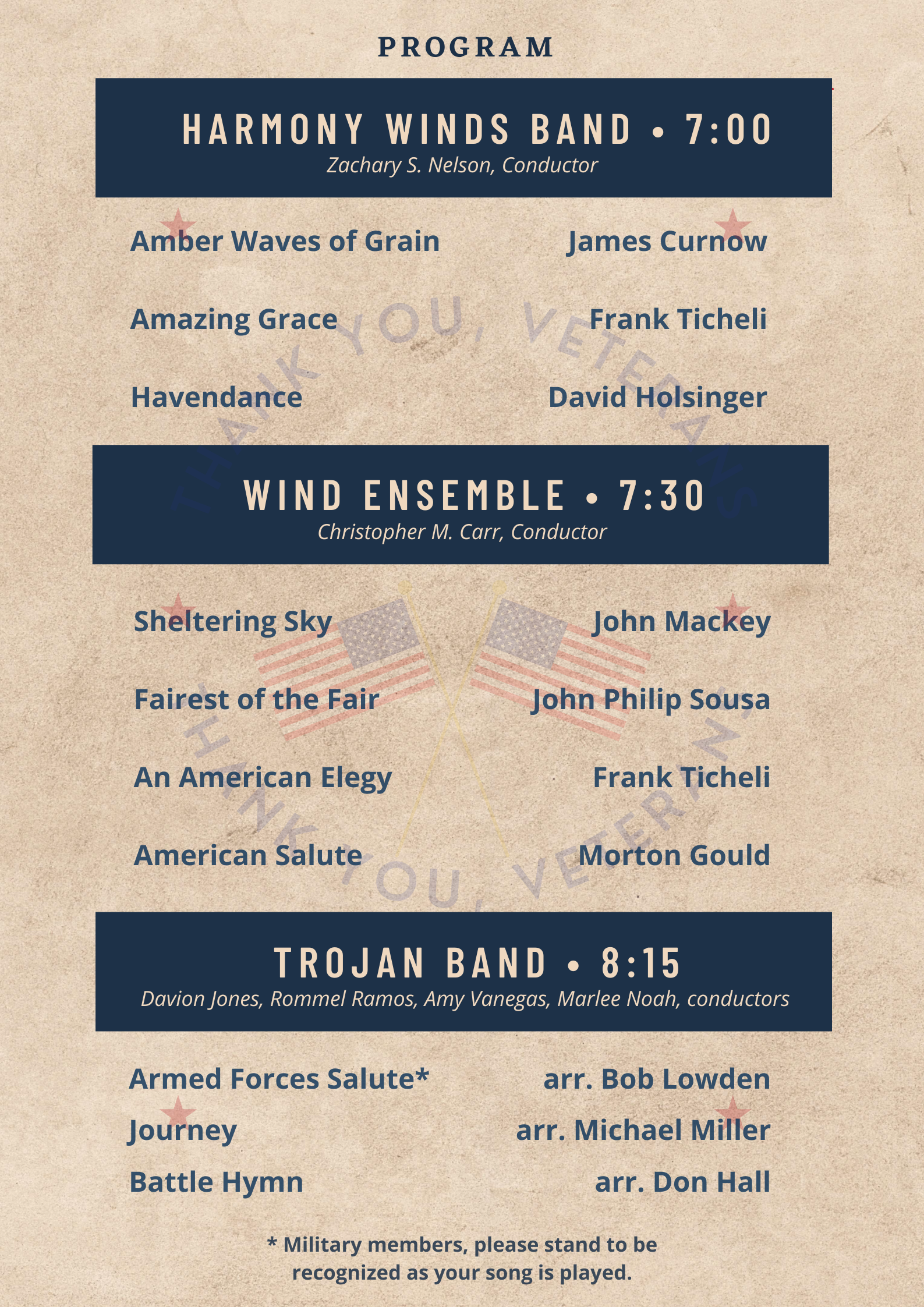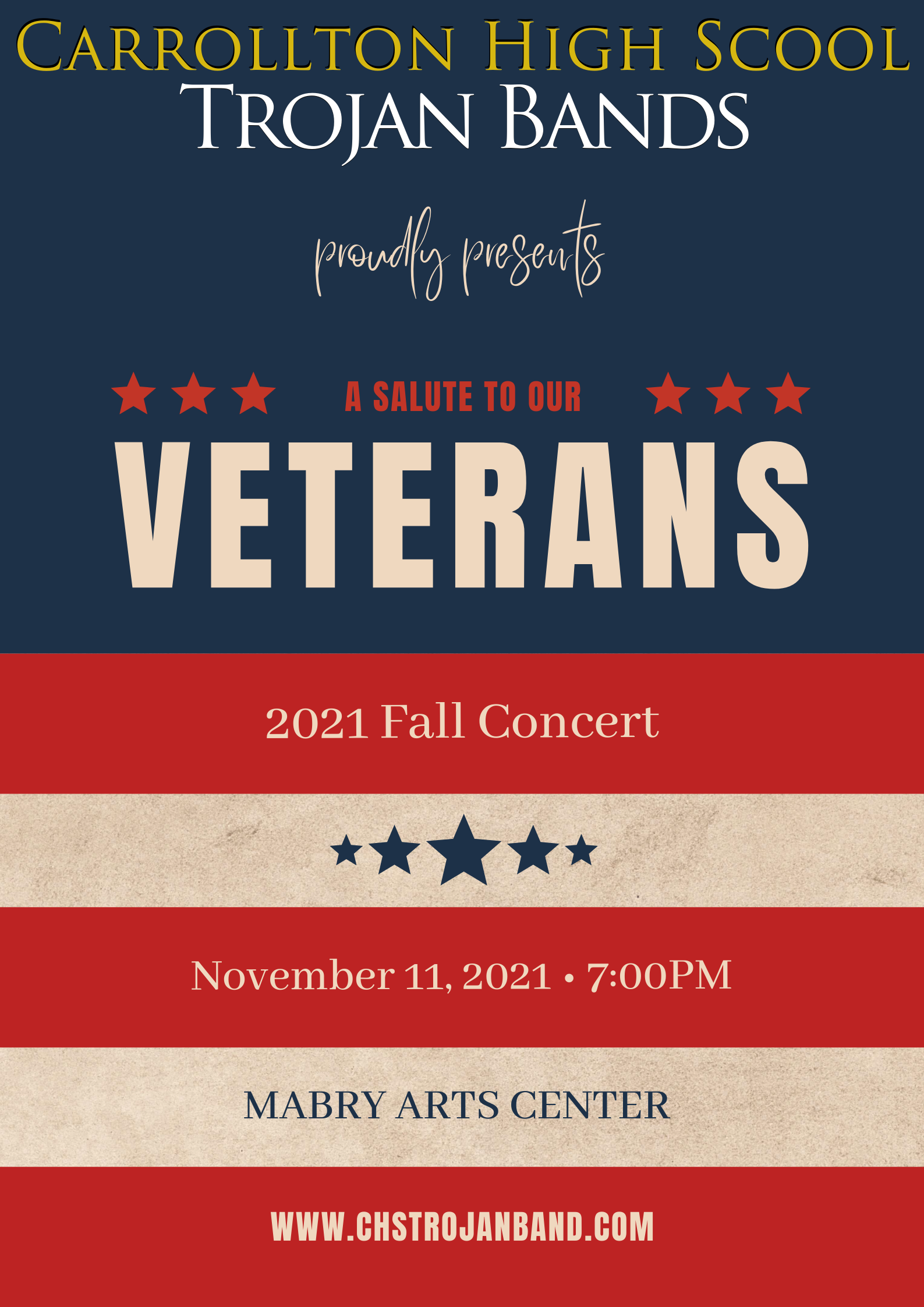Additionally, we have prepared a concert for Veteran’s Day. Some of the music will be presented during the ROTC assemblies on Thursday and the football game on Saturday in addition to at our Concert on Thursday evening.