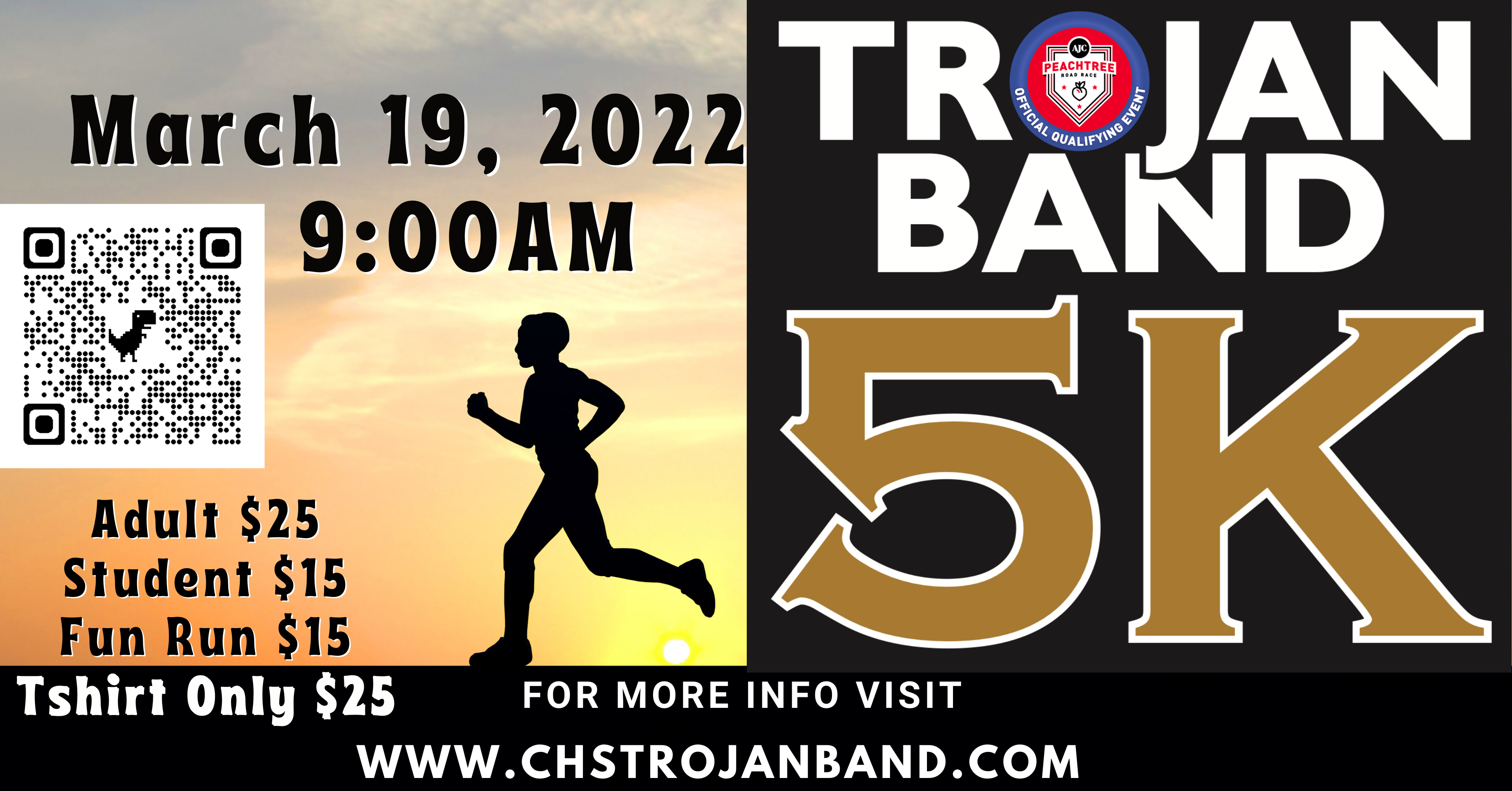 Please download the photo above and share on all of your social media pages. We are hosting our annual 5K on March 19, 2022. People can sign-up by scanning the QR code, visit our website for more information, or access the sign-up page directly at: runsignup.com/Race/GA/Carrollton/trojanband5k?remMeAttempt=