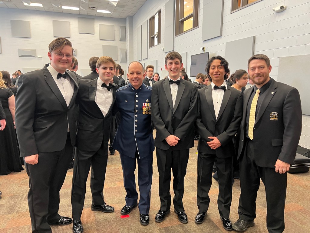 This weekend 14 Trojan Band members visited Ringgold GA where they participated in the GMEA District VII Honor Band. They all represented our band program with pride serving as ambassadors of our community while bowling in Dalton, volunteering to announce upcoming pieces at the concert, answering questions during rehearsals, being courteous guests at the hotel, and enjoying donuts at Krispy Kreme. Justin Arnold was presented Dave Seanor 9-10 Trumpet Award for being principal trumpet in the 9-10 band and Charlie Robinson had many solos as the principal saxophonist in the 11-12 band. The 9-10 students had the honor of working with Joel Denton, who retired as a band director at Ooltewah High School in Tennessee and our 11-12 students were lead by the Commander of the United States Air Force Band, Colonel Don Schofield. Go Trojans!
