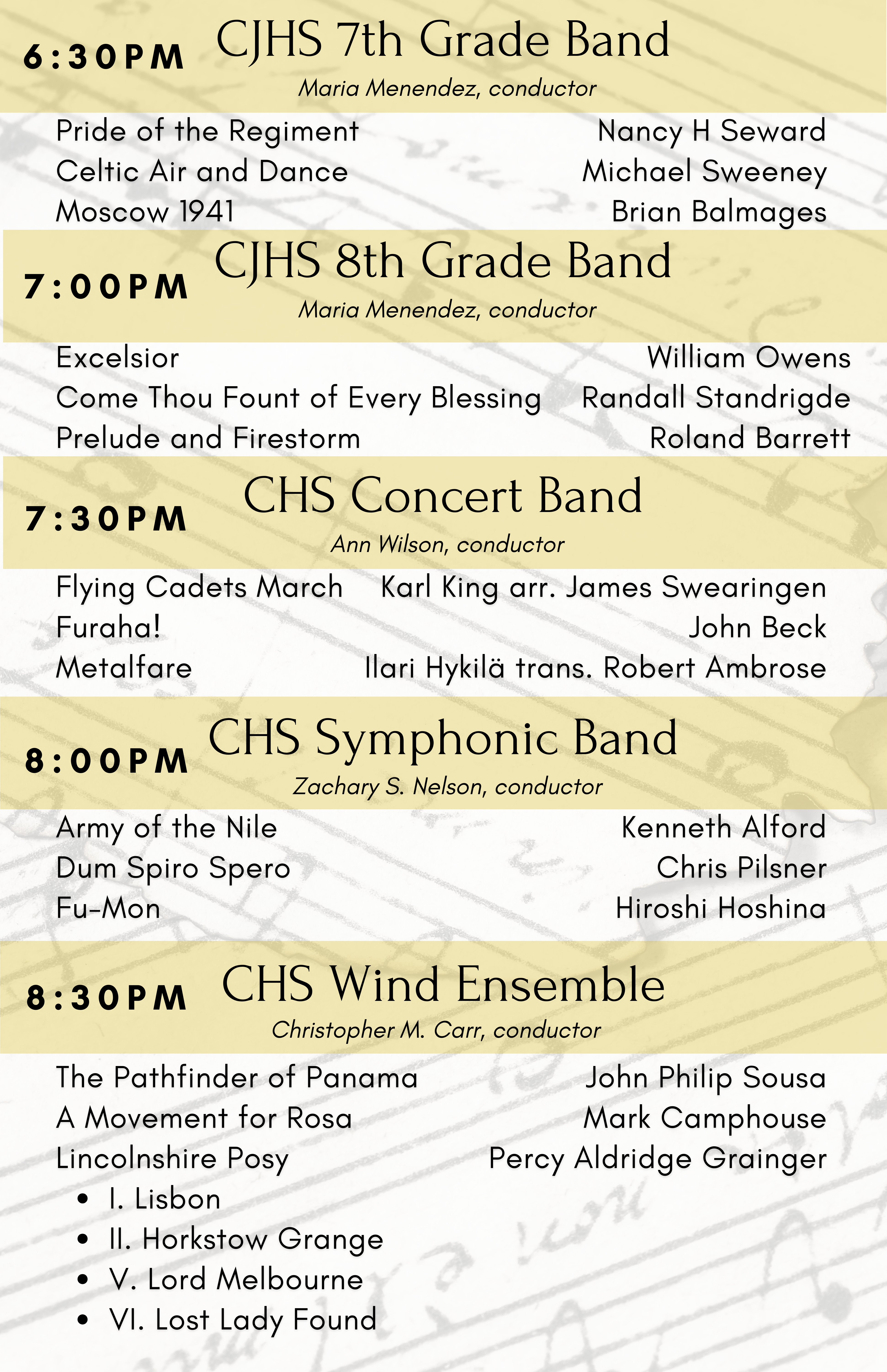 - Wednesday • Concert Band • 3:45pm – 6:00pm