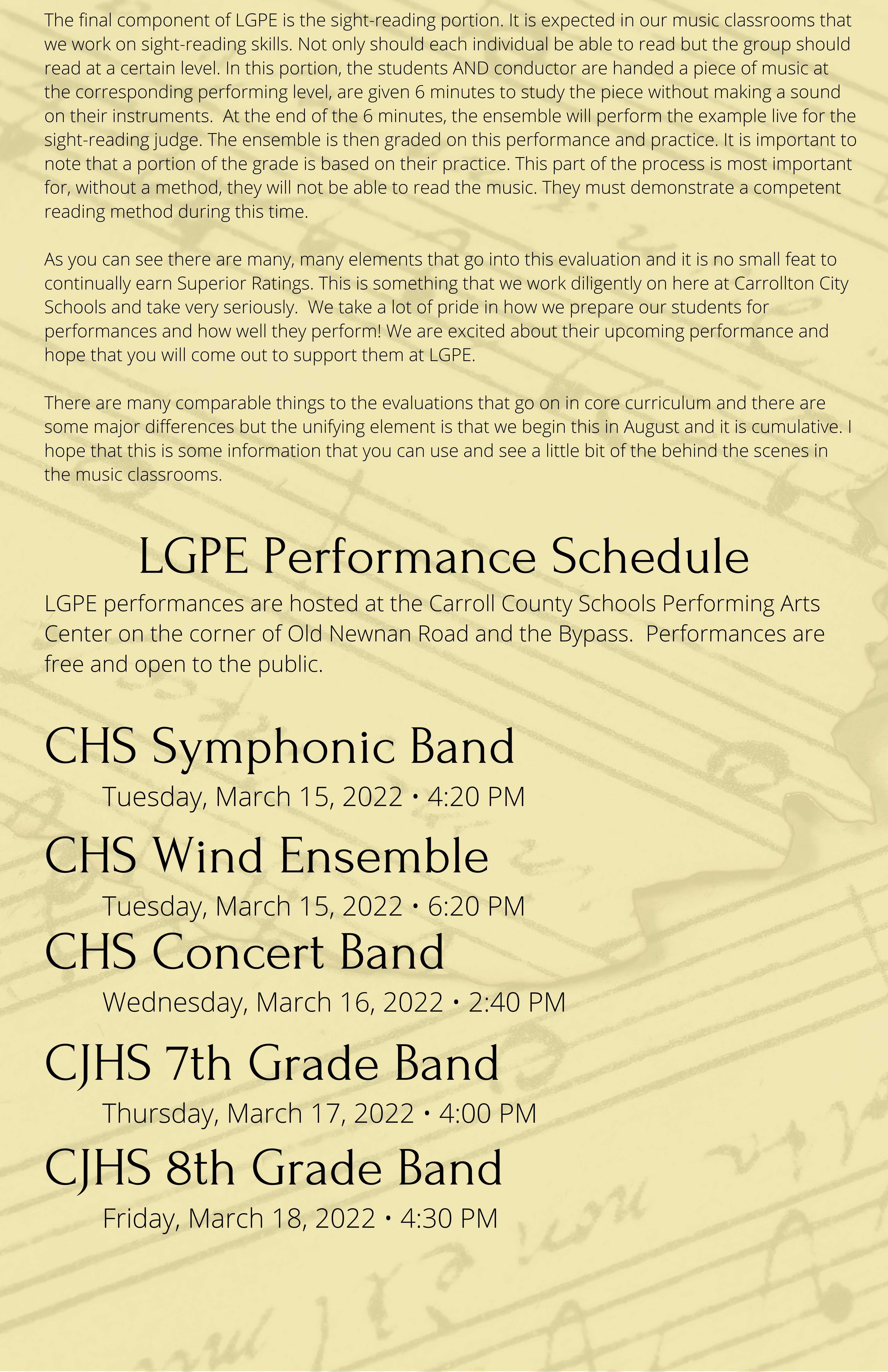 - 3.15.22 – 3.18.22 LGPE Concerts are TBD