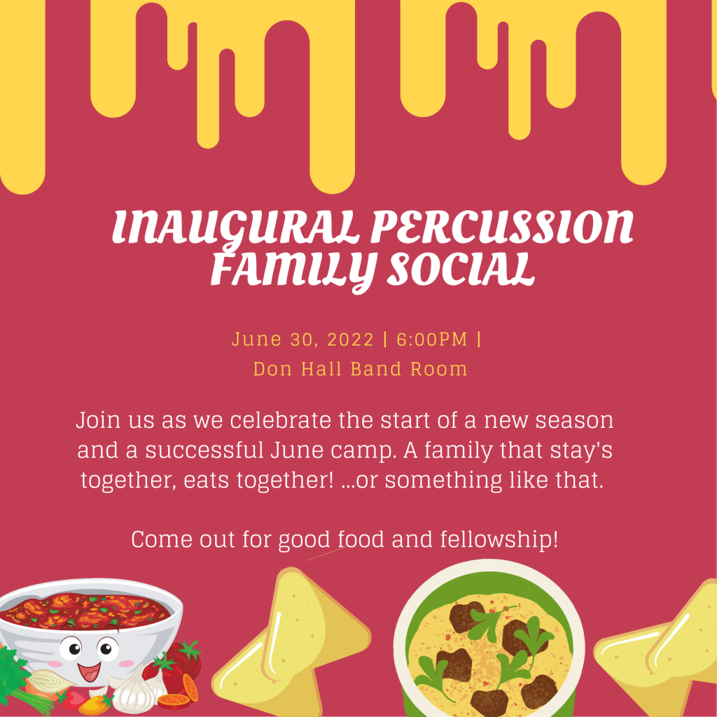 - Inaugural Percussion Family Dinner 6:00pm