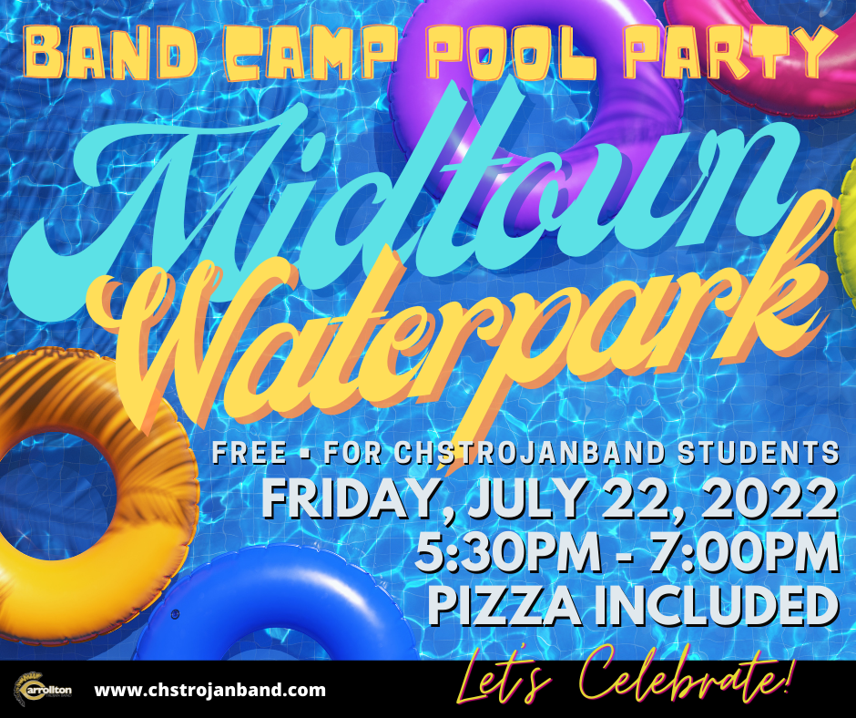 - Friday, July 22 • Band Pool Party • Midtown Water Park • 5:30PM – 7:00PM