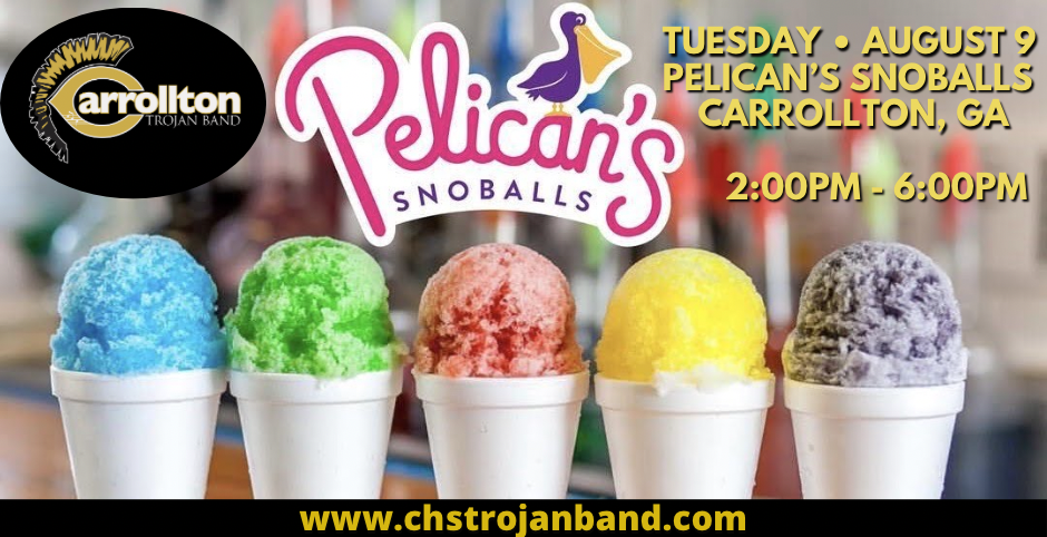 On Tuesday from 2:00pm – 6:00pm Pelican’s is hosting a Trojan Band spirit day. We hope that you will stop by Pelican’s for a cold sweet treat and support our generous sponsor while also supporting your Trojan Band! This is an optional event, but we would love to see you there.