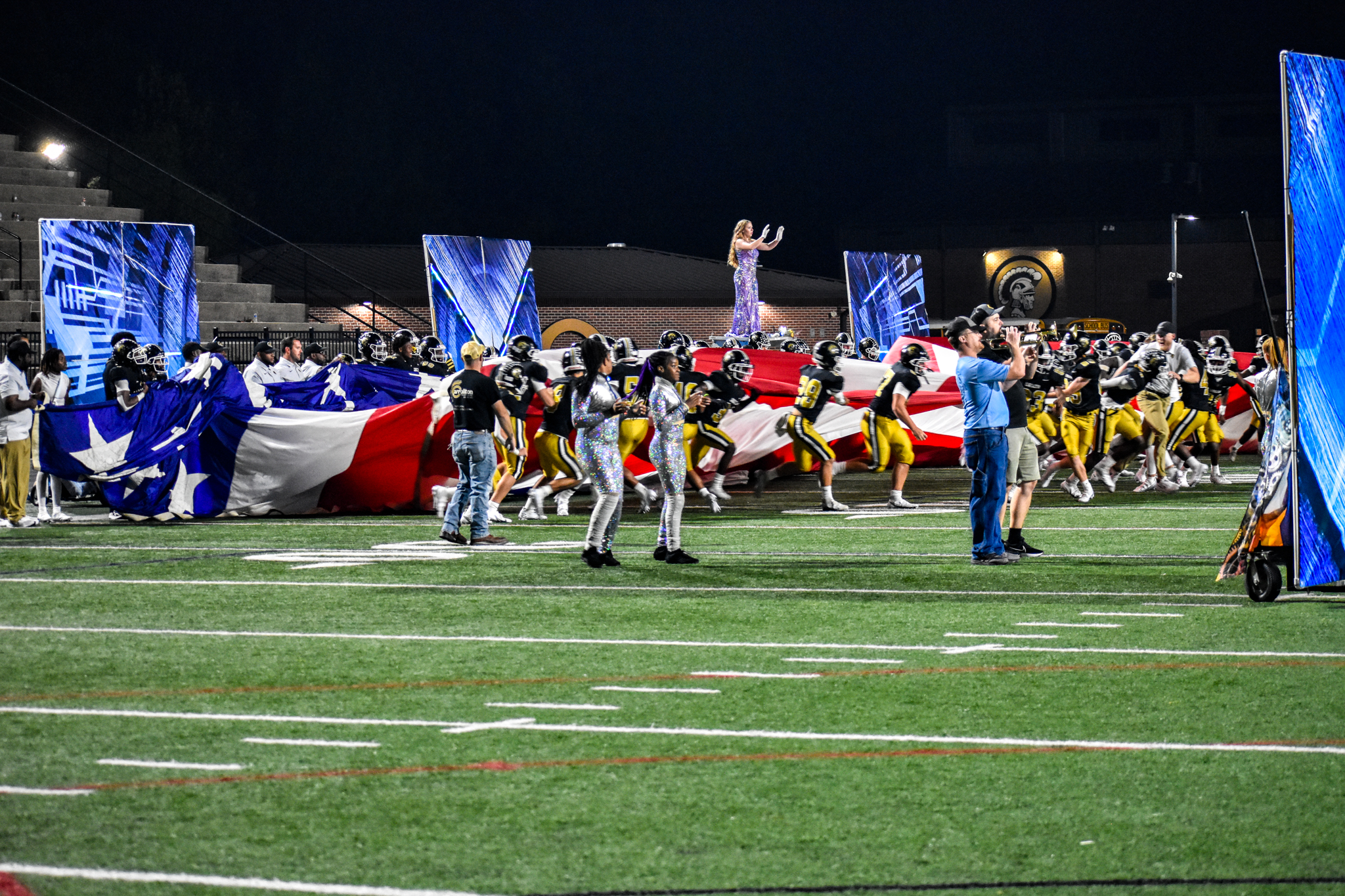 We are so fortunate because of supportive parents, administration, and colleagues. Tonight we were joined by many alumni who performed pregame, in the stands, and Battle Hymn. It was great to catch up with them a bit and play some of our favorite stands tunes together. Then, after the game the cheerleaders sat on the sideline to watch our performance and the football team helped us perform Battle Hymn by pulling the flag! Camaraderie amongst generations of Trojans as well as the team work between our teams makes Carrollton the best place to be!