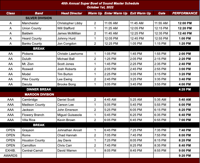 - Saturday: Superbowl of Sound Band Competition • Itinerary Below • Volunteer Here