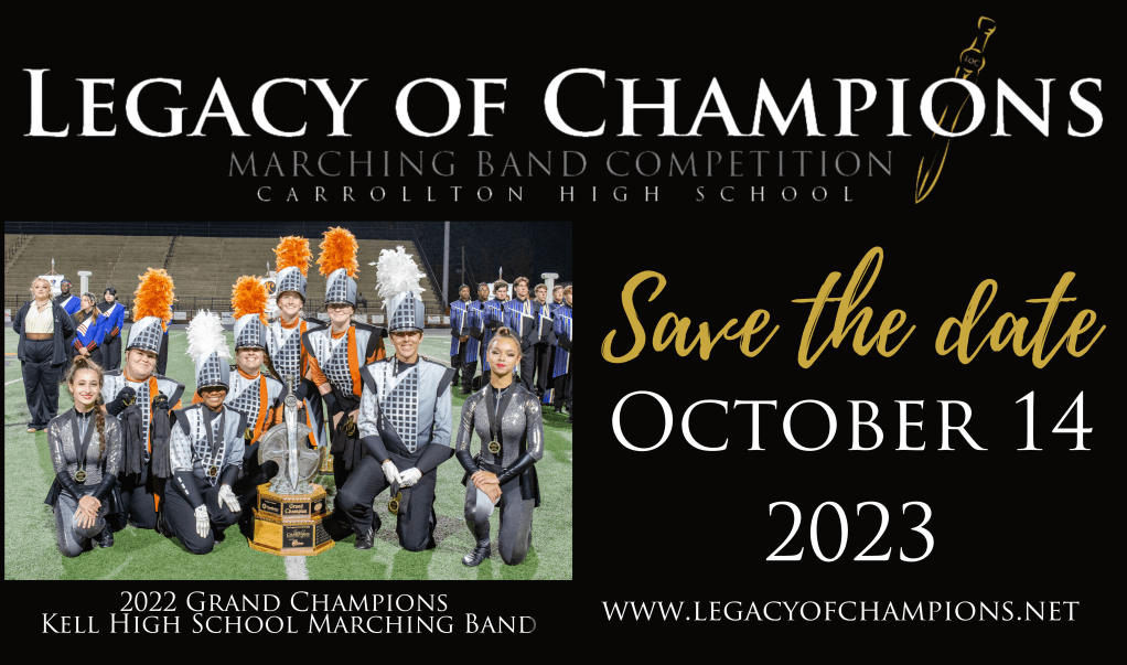 Then on Saturday, we hosted 12 other schools for the 8th Edition of the Legacy of Champions! This is an event that has been methodically planned by our talented and generous LoCCoordinators. Special thank you to Maria Menendez, Sarah Bush, Molly Camp, Yvonne Haley, Candie Hicks, Dawn Jack, Dusty Honeycutt, Andrea Maxwell, Jennifer Hand, Michelle Pethel, Amanda Akin, Terri Spears, Cheryl Moore, Jovita Johnson, Danielle Miley, David Trumble, Robert Moore, Lindy Moore, and Zachary Nelson for the numerous hours that you spent throughout the year helping us to prepare. And then, with the help of outstanding selfless parent and student volunteers we were successful in hosting the most hospitable band competition. Thank you so much for everyone who spent their day with us on Saturday. I have received many compliments about the service which you provided. I am grateful for your willingness to serve others. The LoC is one of my favorite days of the year because I get to participate alongside all of our band families in the service of the band community. We have made a reputation of providing visitors with exceptional service, we run on time and go the extra mile! I am extremely proud of our band! Thank you for making it happen!