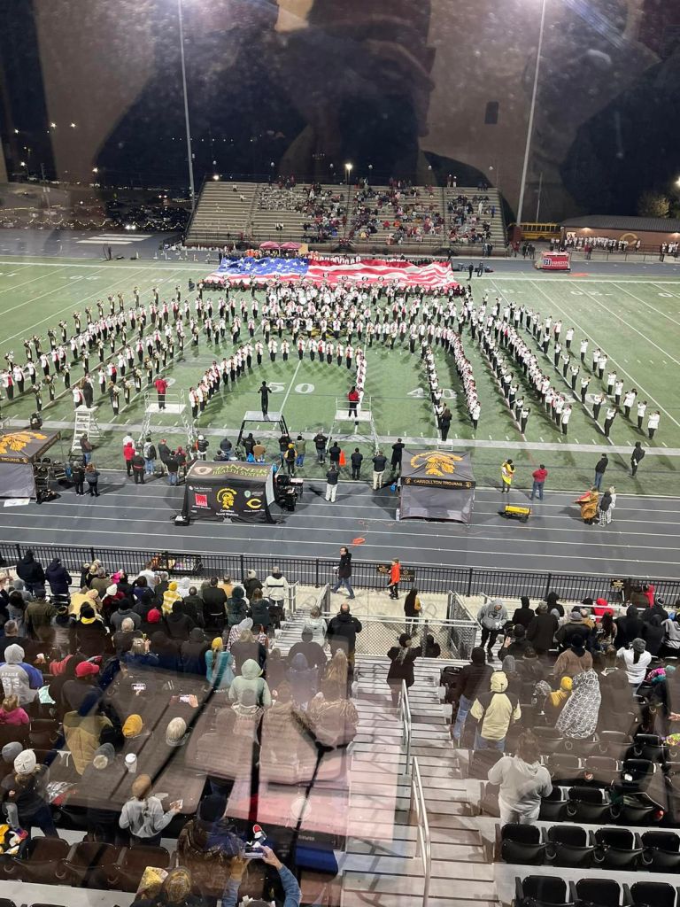Last week we had the honor to perform at 2 school assemblies honoring the veterans of our community on Friday and the opportunity to perform alongside Lowndes County High School during halftime of the 1st round of playoffs. We continue our celebration on Monday with our Annual Veteran’s Day concert, but we wanted to share our gratitude to our Carrollton High School JROTC program for organizing the assemblies and to the Lowndes County High School Georgia Bridgemen for performing with us.