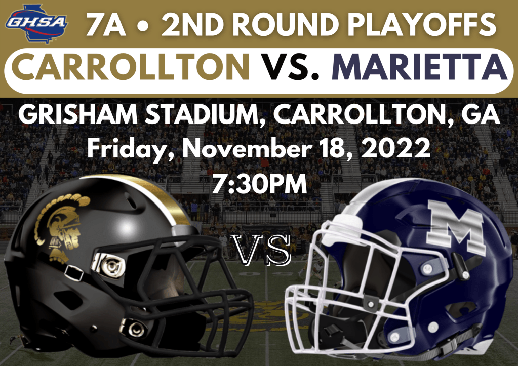 - Friday: 2nd Round Playoff vs. Marietta • HOME • 7:30pm Kick-off • Volunteer Here