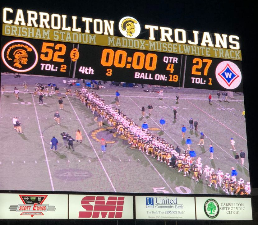 What a game on Friday night! And our band brought the energy to help our team stay motivated through all 4 quarters of football to a 52 – 27 victory over Walton! With this being our first year in Class 7A, this is a monumental season already. We continue chasing history as we travel to Mack Tharpe Stadium to play Colquitt County High School on Friday for the Final 4. The Colquitt County Packers are led by former Carrollton Coach Sean Calhoun. Friday promises to be another great night of football! Go Trojans!