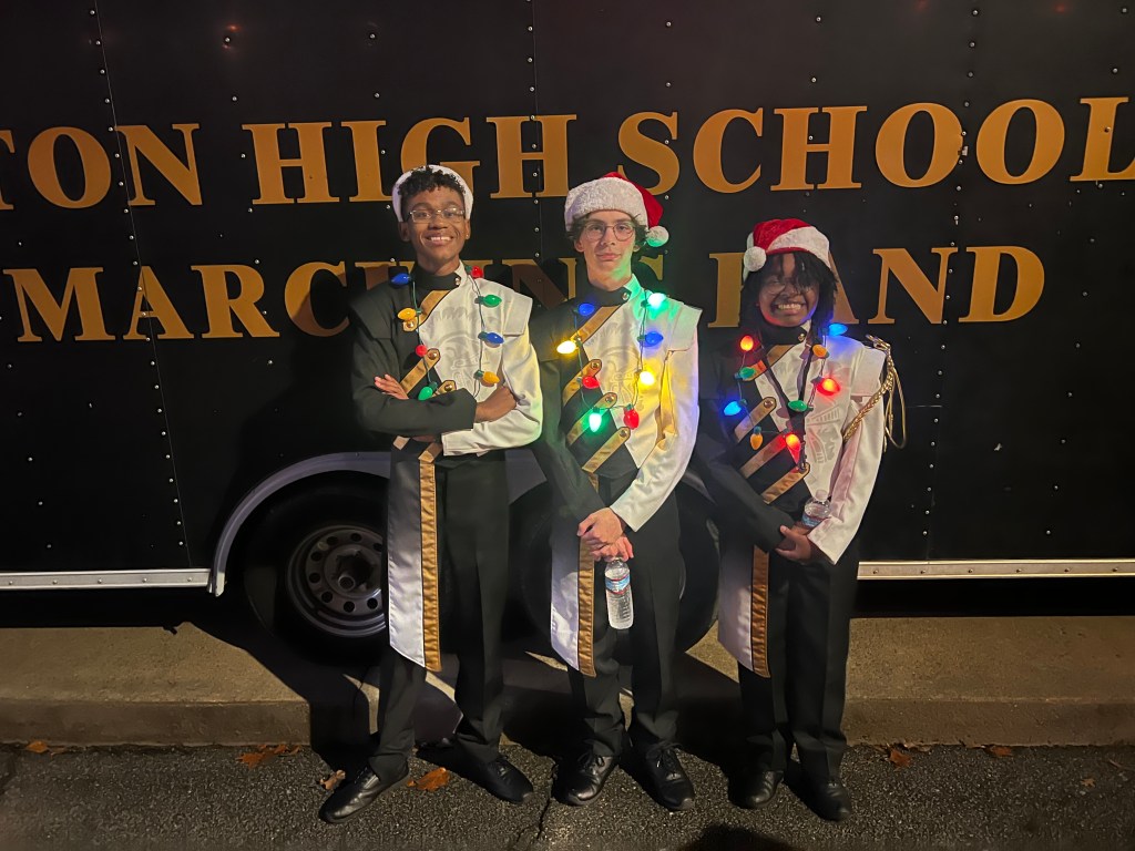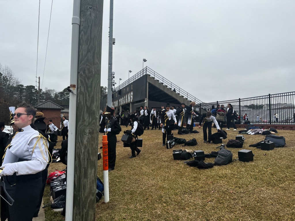 In the midst of the last couple of weeks our schedule has been jam packed with performances designed to serve our community. After arriving home at 4:00AM from the Colquitt County game, our students performed energetically for our Carrollton Christmas Parade! A few of the students even traveled to Ringgold to audition for the final All-State Round before returning for the parade! Then we shared a Christmas concert with our chorus, which was an outstanding gift to our community. The Friday following the concert began with a system wide pep-rally celebrating our football team’s advancement to the championship game. To see everyone from the district inside the stadium was an amazing experience! As soon as we concluded, the jazz band loaded a bus to visit the Kiwanis luncheon and performed a 3 tune jazz set that concluded with about 20 minutes of our favorite stands tunes to celebrate our football season. On Saturday morning, more than 50 of our students traveled to East Paulding High School to audition for the GMEA District VII Honor Band. They had just enough time to grab a quick lunch before reporting for the football team send off, where we performed another pep rally before loading the buses to follow the team to Center Parc stadium.