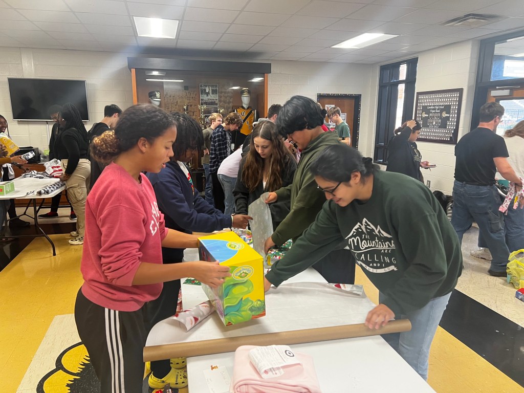 Last week many students stayed after to help us wrap the gifts for the families we have sponsored. One of the families has already picked up their gifts and they asked me to share their thanks with all of you! Thank you again to all of our generous families who came together to make this Christmas special for these families in need.