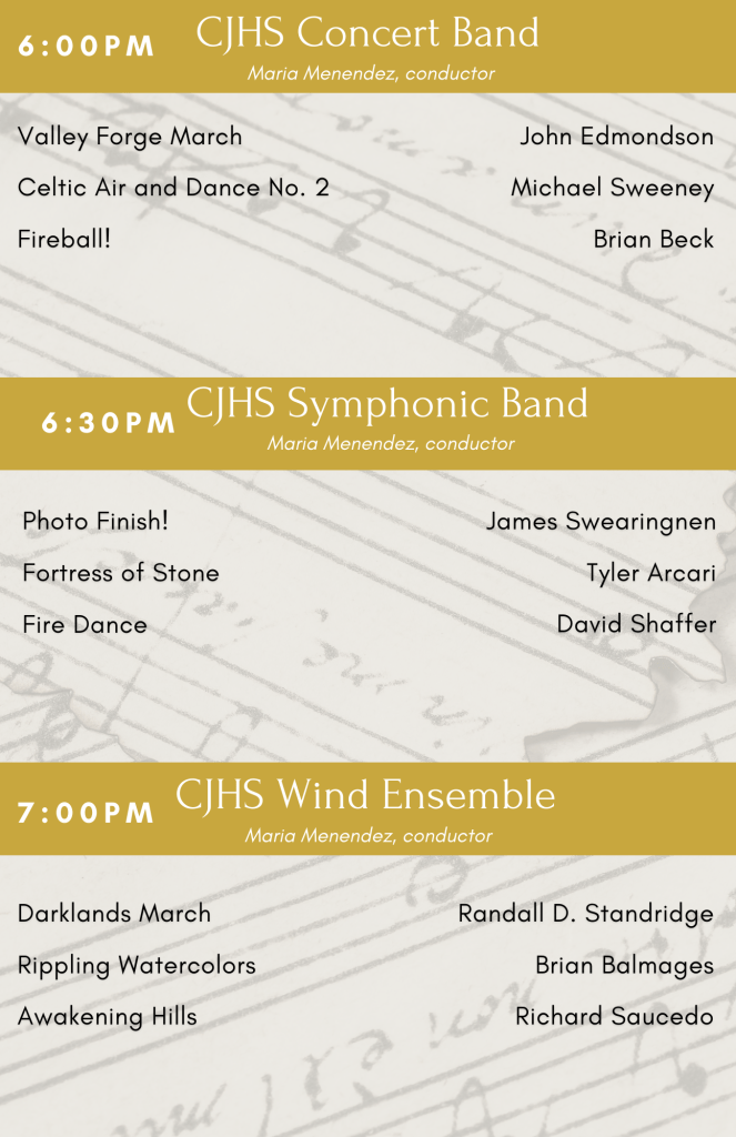 - Wednesday: Concert Band • 3:45pm – 6:00pm