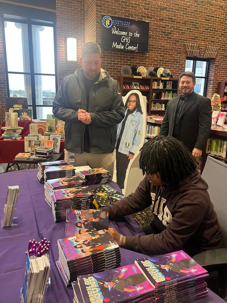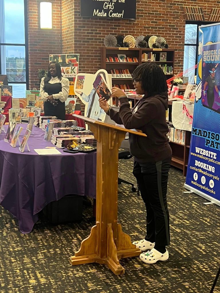 Last week was outstanding! Our students provided steady effort all week and continue to make strides towards the upcoming goals! Our Winter Guard has their next performance next Saturday, and the band classes have their next performance on Tuesday after winter break. We concluded last week with a celebration of one of our outstanding members. Madison Pate began writing books and hasn’t stopped. What began as Brick of Sound has continued in a 5 book series. On Friday, we celebrated the publishing of the third book with a dedication ceremony. Madison dedicated her book to her uncle, Katahj Copley, who was able to attend. Dr. Stoutmire, Madison’s mother, thanked the school system for the tremendous support and presented a copy of the book to our principal Mr. Lyle. Principal Lyle thanked the family and staff for partnering together to provide the best possible education for our students. Thank you to Ms. Lawler for allowing us to host the ceremony in the Media Center and for providing the perfect space for such recognition! Congratulations Madison! We look forward to celebrating again when book 4 is published.