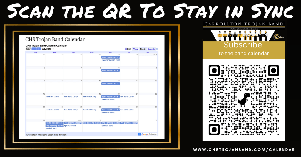 Stay up to date by syncing your calendar to the band’s calendar. In an effort to help our rising 9th graders learn the 4th of July Music and help them feel better about marching, we have added some Rookie Camp dates for them. We will meet on Mondays from 4:00pm – 6:00pm beginning on May 8. May 8, 15, 22. Thank you for attending if you are available. It will be a great way to get to meet some upperclassmen and get rid of any nervous jitters you may have about marching band. Be sure to wear athletic clothing with tennis shoes to the camps.