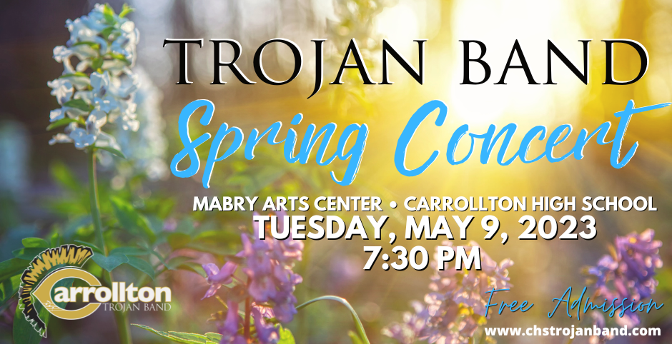 Tuesday, May 9 we will perform our Spring Concert in the MAC following the CJHS concert. Concert Band begins at 7:30PM, followed by Symphonic Band at 8:00PM, and Wind Ensemble at 8:30PM. We will perform in our formal concert attire.