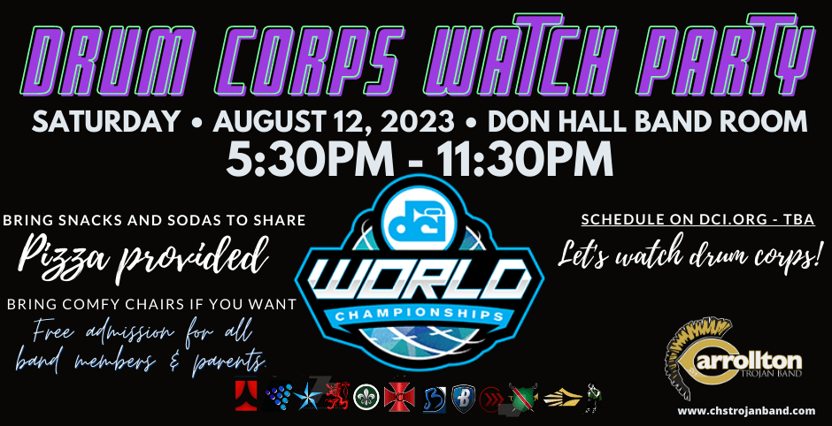 - Saturday: DCI Viewing Party in the band room • 5:30PM – 12:00AM