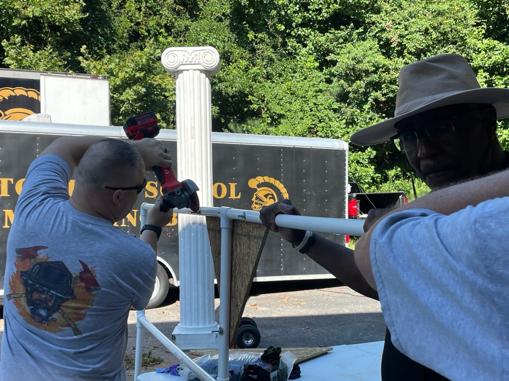Thank you so much to the volunteers (parents and students) who showed up at the band room to work on props on Saturday morning!