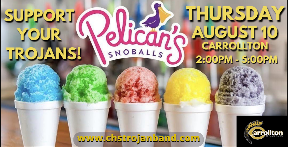 Pelican’s is donating a portion of the profits earned this Thursday from 2:00pm – 5:00pm to our Trojan Band! Please be sure to let them know that you are there to support the Trojan Band Spirit Day. Thank you so much to Pelican’s for supporting our students! Let’s spread the word and bring them some business on Thursday! Will you copy this picture and post in on Facebook? Please.