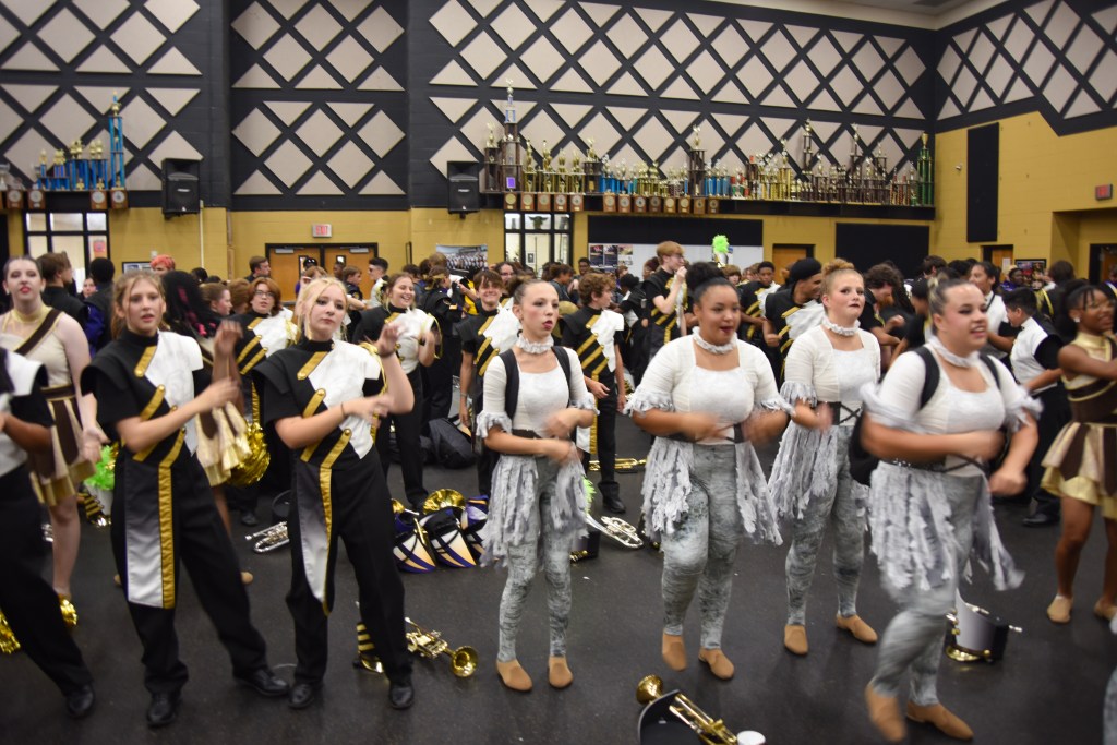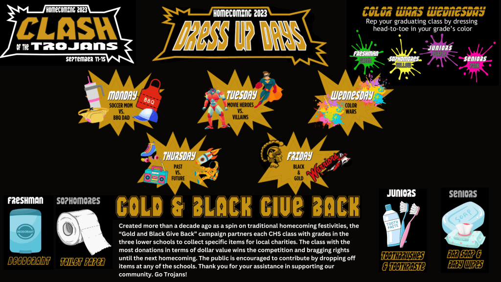 Saturday our students PUT IN THE WORK! After a fun night of cheering on our Trojans, we put in a 1:00pm – 9:00pm rehearsal to finish our show in time for Homecoming. Thank you to band parents who were there with us to feed the students and make sure that we had what we needed. We are excited to debut our full show after the game on Friday night. Please spread the word for everyone to stay after the game. Thank you to Coach King for agreeing again to the football team pulling the flag after the game. We are thankful for the camaraderie and look forward to bringing the noise for you all next Friday!