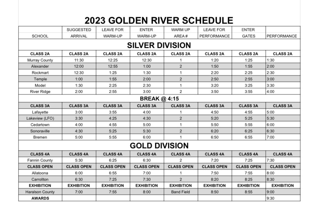 Saturday, October 21 we are competing at the Golden River Marching Band Competition hosted by:
