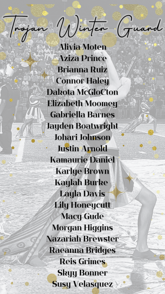 Tryouts were last week and we are excited about the potential displayed by the following students concerning their work ethic, rapport amongst peers and staff, and commitment to excellence. It is going to be a GREAT year! Our regular rehearsals are on Tuesday and Thursday from 6:15 – 9:15pm. Stay tuned for parent meeting details with more specifics concerning schedule and financial commitment.