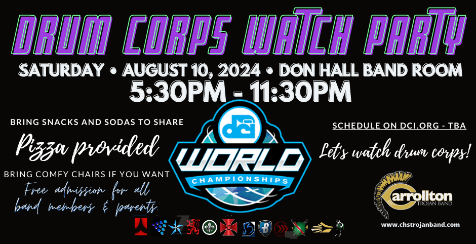 All CHS Trojan Band members are invited to watch DCI Finals together in the band room. DCI is marching band’s major league. These performers work all summer long to prepare their shows and finals is the championship performance. Only the top 12 performing corps make it to finals, each performance will be extraordinary!