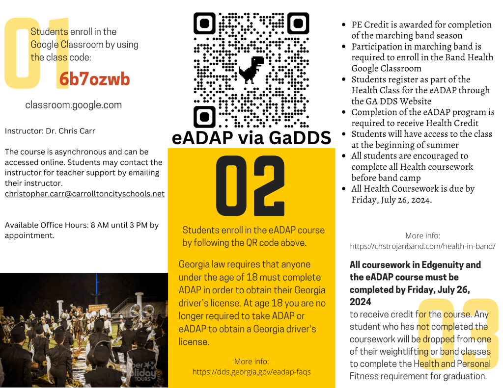 All work was due by Friday, July 26, 2024. If you have not completed the eADAP course yet, that is still open. Get it done now. The rest of the coursework must be completed in Edgenuity and is set up by an assistant principal. If you did not complete the Edgenuity for any reason, please email Dr. Carr. He will be discuss how to proceed with administration.