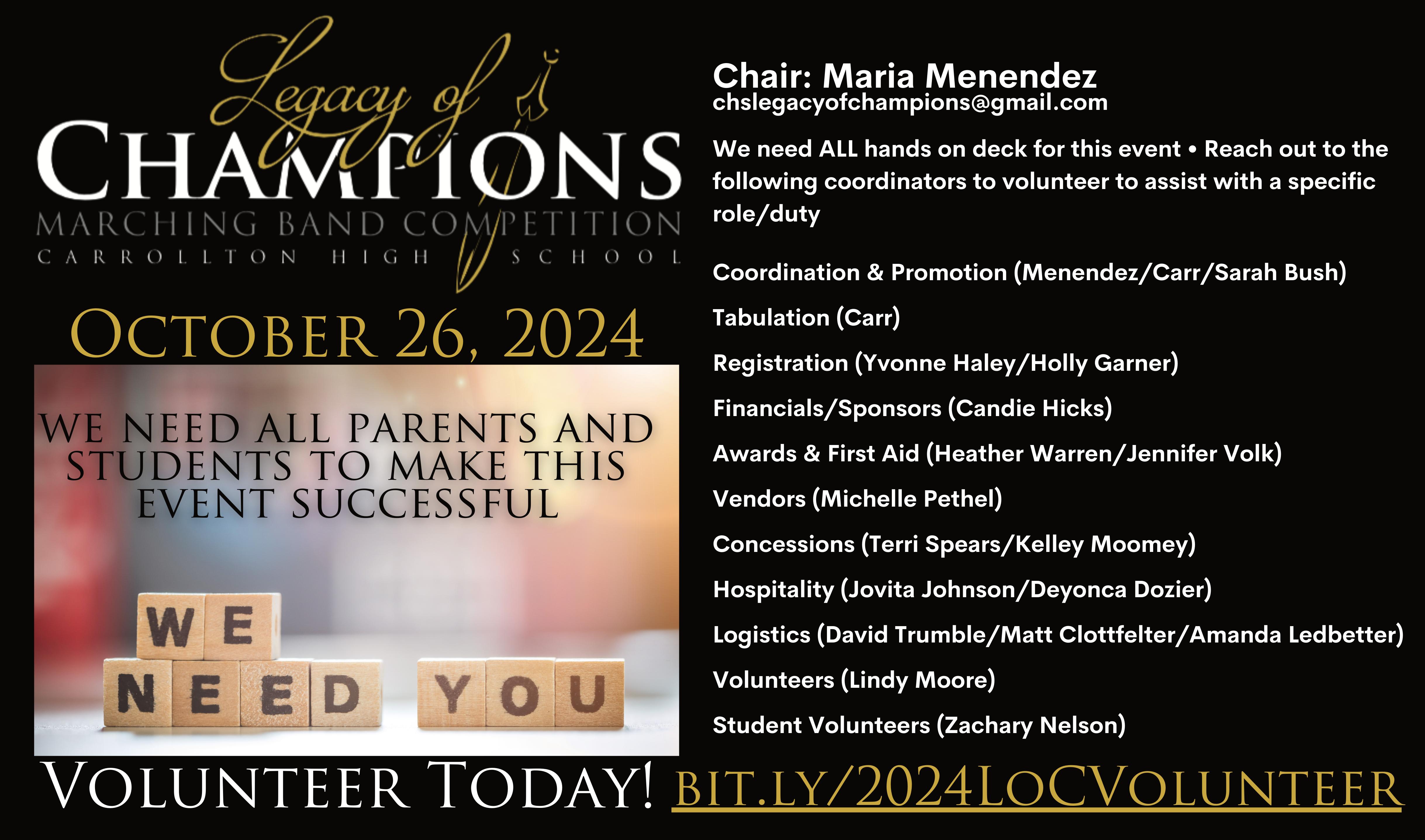 - 26 • Legacy of Champions Marching Competition • All Day • Volunteer Here • Buy Tickets