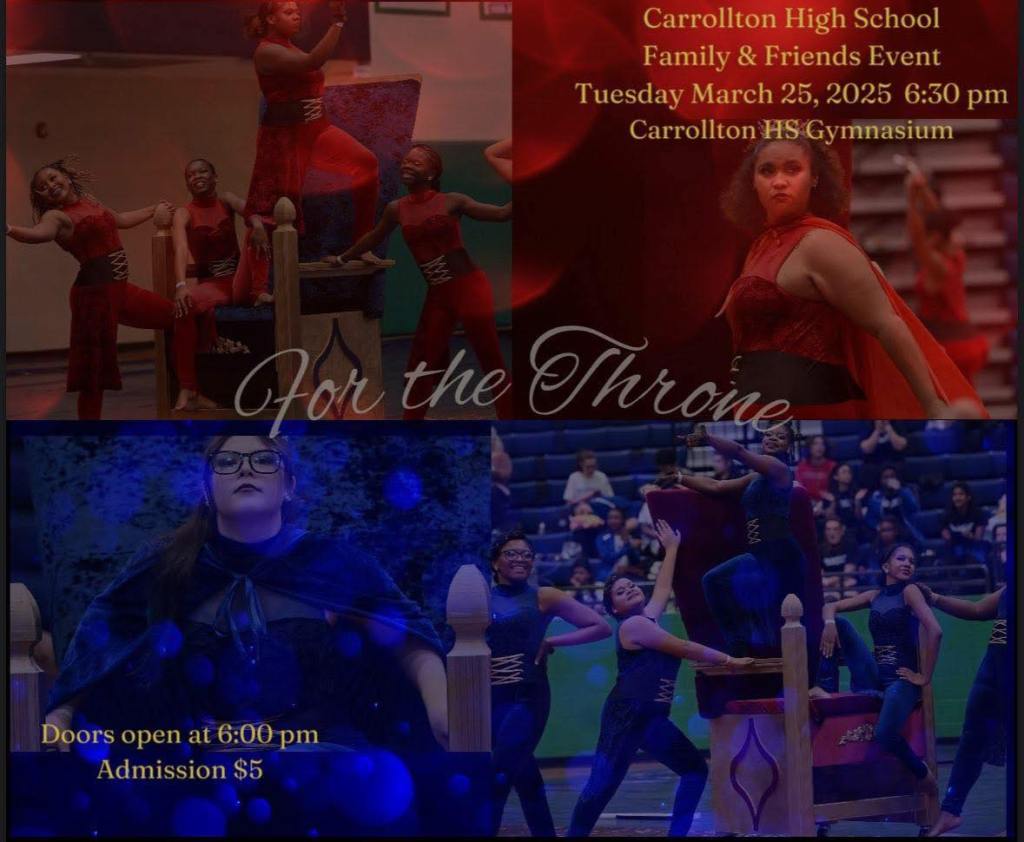 Our Winterguard will be hosting our Friends and Family Show on March 25, 2025 in the Carrollton High School Gym beginning at 6:00PM. Tickets are only $5 and can be purchased via Go Fan. Sign up to Volunteer Here