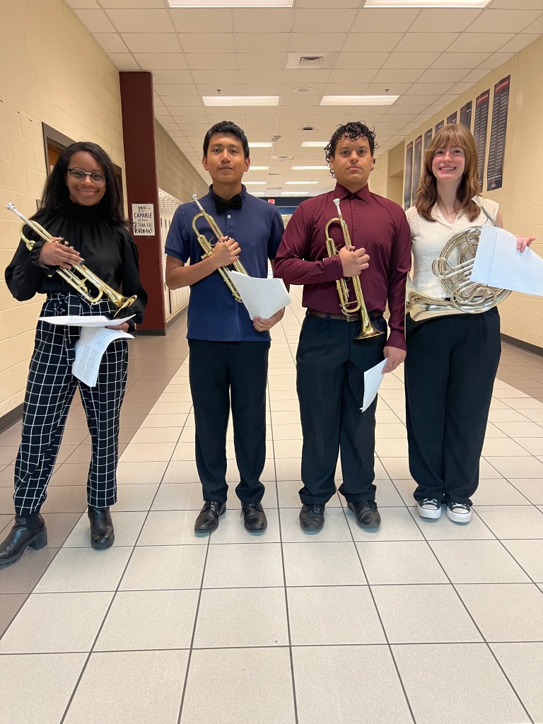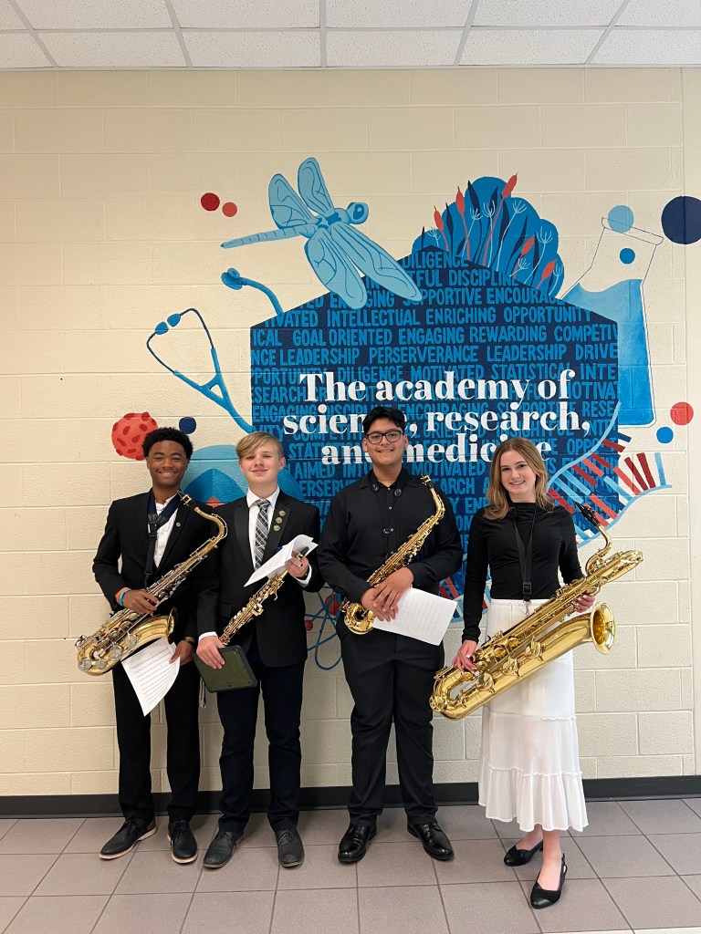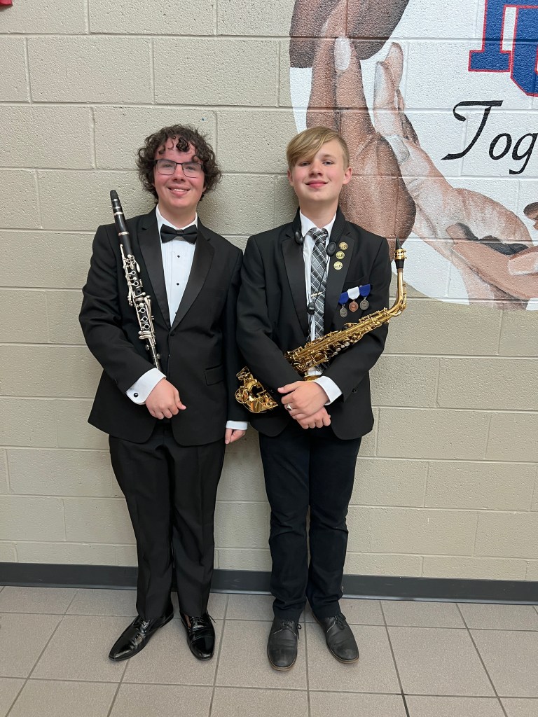 Additionally, we had 12 performances at Solo & Ensemble on Saturday at Paulding County High School. Momar Diack performed Claire de Lune by Claude Debussy on piano, Tyler Clotfelter performed Sonata in G Minor by JS Bach arranged by John Harle on soprano saxophone, William Rivera, Angel Lopez, Emma Englebird, and Miracle Grace Hayles performed the Monsters Inc Theme arranged by Miracle Grace Hayles as a brass quartet, Tyler Clotfelter, Yael Ramirez, Camren Harley, and Samantha Berg performed Libertango by Bernard Manilla as a saxophone quartet, Samuel Wimberly and Tyler Clotfelter performed Gregory Wannamaker’s Duo Sonata as a duet, Tyler Clotfelter performed an etude by Marcel Mule on Alto Saxophone, McKenzie Swain and Dani Gray performed In Dulci Jubilo as a bass clarinet duet, Hunter Moore and Lucas Priest performed Palladio by Karl Jenkins as a euphonium duet, Lucas Priest and Megan Ou performed Adagio by Joaquin Rodrigo, Hunter Moore and Carson Moore performed Herbie Hancock’s Chamelon as a baritone and bass duet, Hunter Moore performed movement IV of the Blue Lake Fantasies by David Gillingham on euphonium, and Tyler Clotfelter, Yael Ramirez, Camren Harley, and Samatha Berg performed Final Boss by Chris Evan Hass as a saxophone ensemble. All performances earned the highest marks! Superiors across the board! These students picked their own music, organized their own rehearsals, and prepared this music on their own! Each showed tremendous talent and leadership throughout the process. If you see them, please share a well-deserved CONGRATULATIONS!!