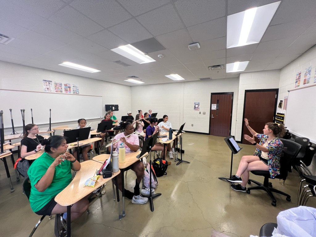 This past week, we were joined by a team of outstanding specialists who taught sectionals, assisted with our morning visual blocks, and helped us learn drill in the evenings. Thank you so much to Blake Durden, drum majors; Rachel Breaux, flute; Christopher Mothersole, clarinet; Zavier Breedlove, saxophone and low reeds; Hannah Royals, mellophone; Rachel Worley, trumpet; Jordan Williams, trombone; Kelley Oziere, baritone; and Kira Babbs, sousaphone, for providing our students with knowledge and encouragement. We got better because of your efforts, and we look forward to continuing the work that you’ve started!