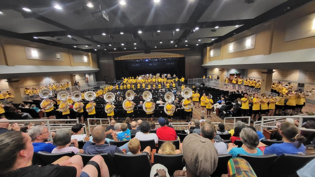 This week, we meet only on Monday, Tuesday, and Thursday in the stadium between 6:00PM and 9:00PM for full band rehearsals. We also have 2 special performances. One on Monday morning and the other on Tuesday morning. Refer to the week at a glance for more information.