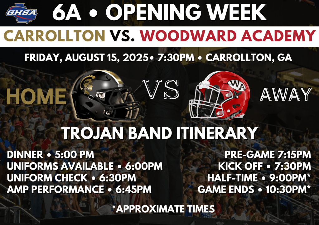 Tonight is our DCI Watch Party! This is a free event for our Trojan Band members and their parents. Bring a camping chair, beanbag, or picnic blanket, and camp out in the band room for the festivities. Food will be available, but we ask students to bring drinks and snacks to share. This is a fun night of fellowship while watching the best corps of the year to determine who will earn the World Championship title for 2025.