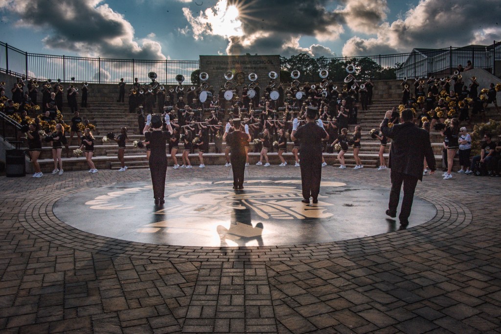 The 2nd week of school was another outstanding week! Our students continue to work diligently on the show, despite having some weather challenges; we made great progress this week. The game vs. Columbia was a lot of fun. We were joined by the Carrollton High School Dance Team, and we had a great time entertaining the crowd in the AMP together as well as cheering on our Trojans together in the stands! Although Columbia did not perform on the field at half-time, their stands presence was full of energy and precision. Our students enjoyed watching them parade out of the stadium and interacting with them after the game.