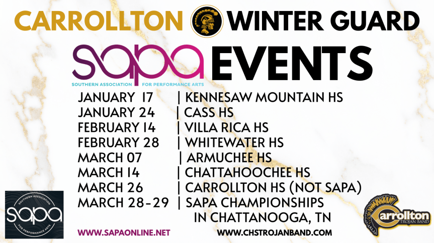 - Saturday: Winter Guard at Villa Rica HS | 4:57PM Performance | More Info