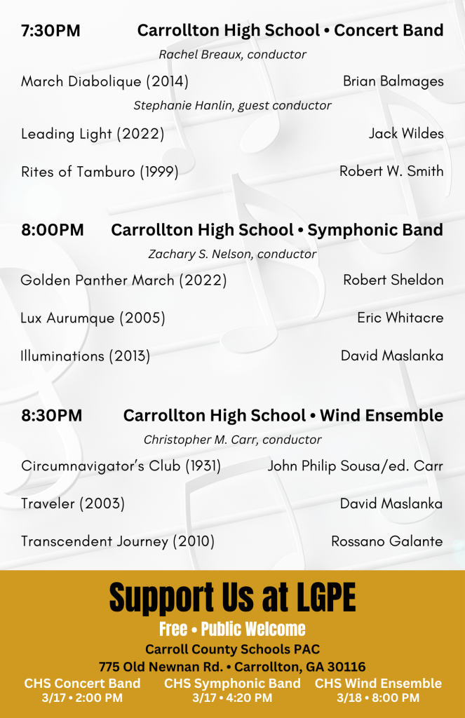- 17 • LGPE | Concert Band – 2:00PM | Symphonic Band – 4:00PM | Carroll County Schools PAC
