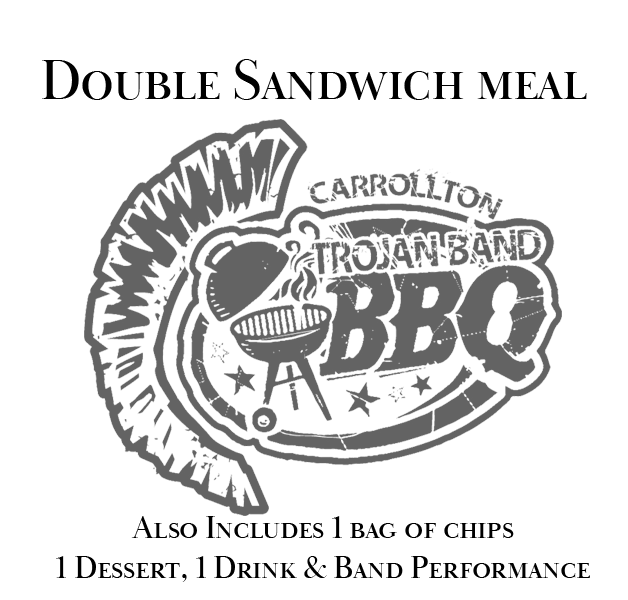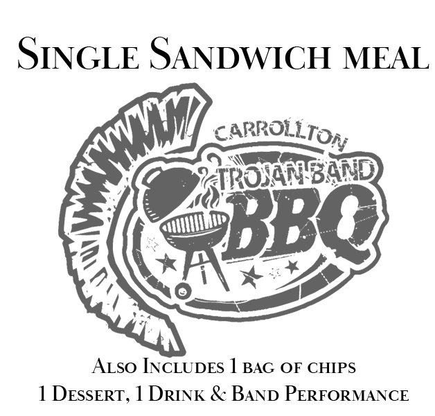 The annual Trojan Band BBQ is one of our longest-running and most successful fundraisers of the year. We serve BBQ sandwiches out of the visitor’s side concession stand beginning at 11:00AM until the end of our performances that evening. Single sandwich meals are $10 and include a sandwich, a bag of chips, a cosmic brownie, and a drink. A meal with 2 sandwiches is only $15. BBQ is prepared by Billy Bobs.